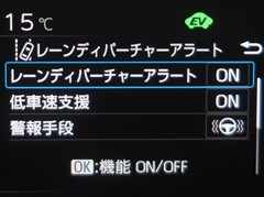 レーンディパーチャーアラートとは車線、又は走路からの逸脱の可能性を警告すると共に、車線、又は走路からの逸脱を避けるためのハンドル操作の一部を支援する機能です。詳細は販売店スタッフまでお尋ね下さい。