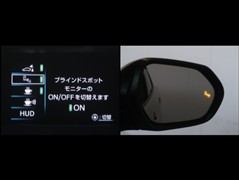 車線変更時などに、ドアミラーでは確認しにくい後側方エリア(ブラインドスポット)に存在する車両をレーダーで検知。警告サインをドアミラー等に表示することで、運転者に注意喚起する機能。