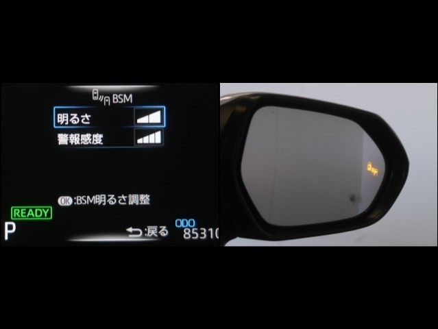 車線変更時などに、ドアミラーでは確認しにくい後側方エリア(ブラインドスポット)に存在する車両をレーダーで検知。警告サインをドアミラー等に表示することで、運転者に注意喚起する機能。