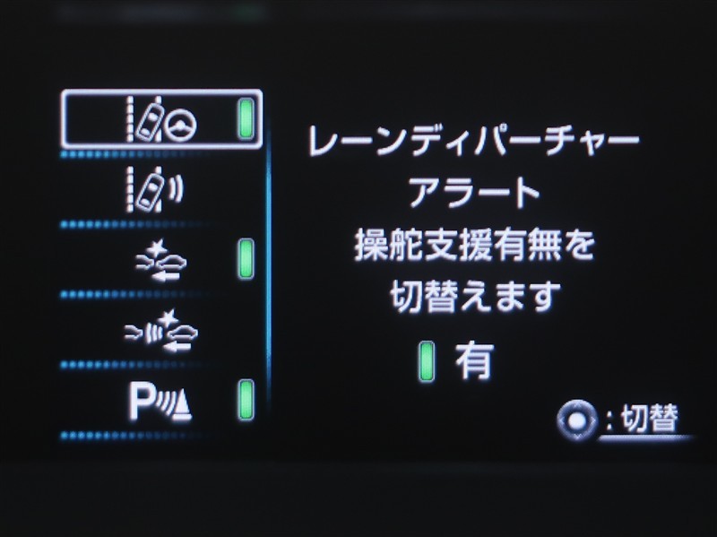 レーンディパーチャーアラートとは車線、又は走路からの逸脱の可能性を警告すると共に、車線、又は走路からの逸脱を避けるためのハンドル操作の一部を支援する機能です。詳細は販売店スタッフまでお尋ね下さい。