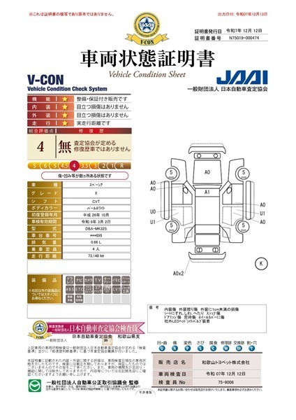 第三者機関「日本自動車査定協会」の車両状態証明書にて情報開示。一台ずつ内外装をチェック。安心のトヨペットU-Car!★査定協会評価点4点★