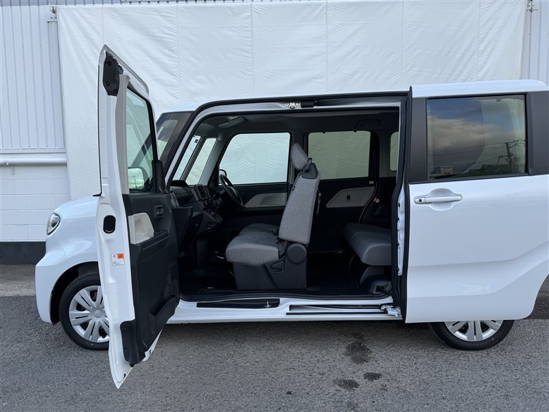 助手席側ドアと左側スライドドアの間に柱のない車体構造となっており、広々使えて便利です!
