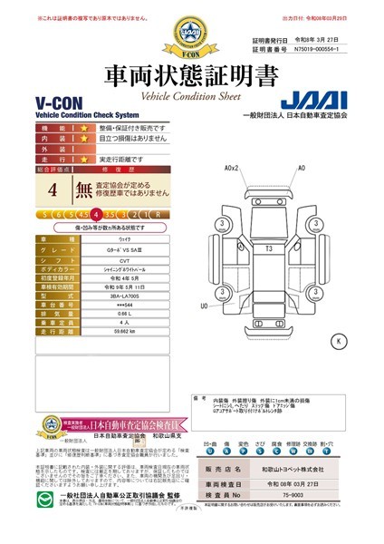 第三者機関「日本自動車査定協会」の車両状態証明書にて情報開示。一台ずつ内外装をチェック。安心のトヨペットU-Car!★査定協会評価点4点★