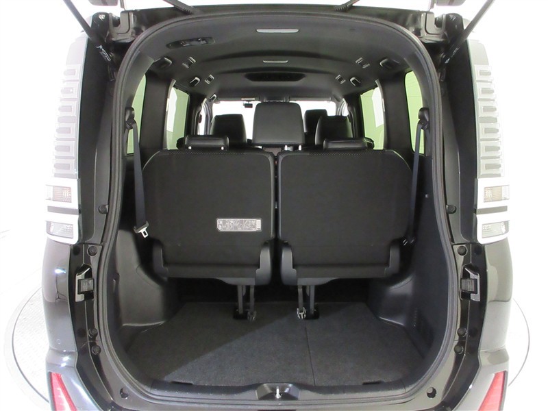 3列目シートは跳ね上げ式で折りたたみ可能です。キャンプ用品など大きな荷物もばっちり収納可能です。