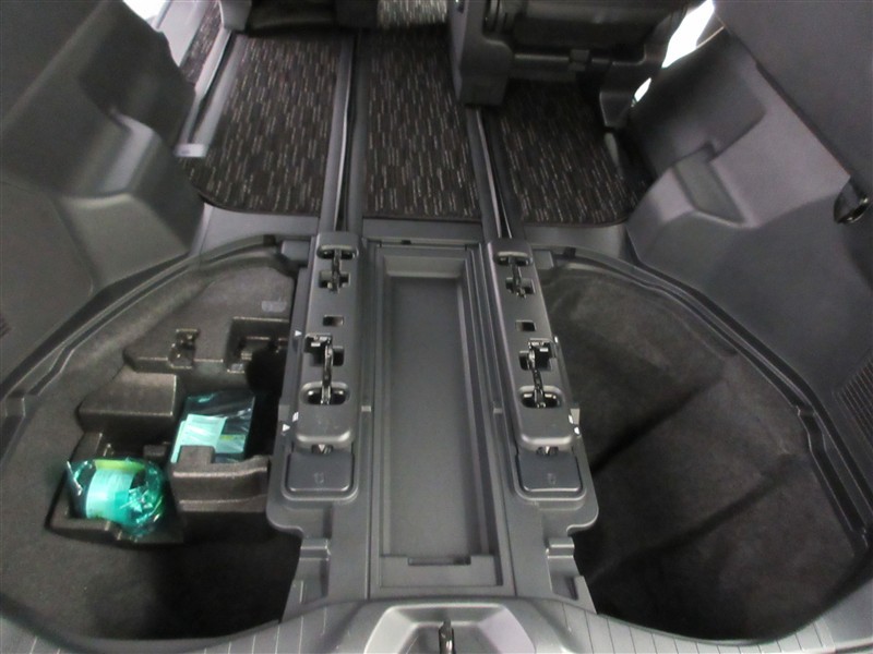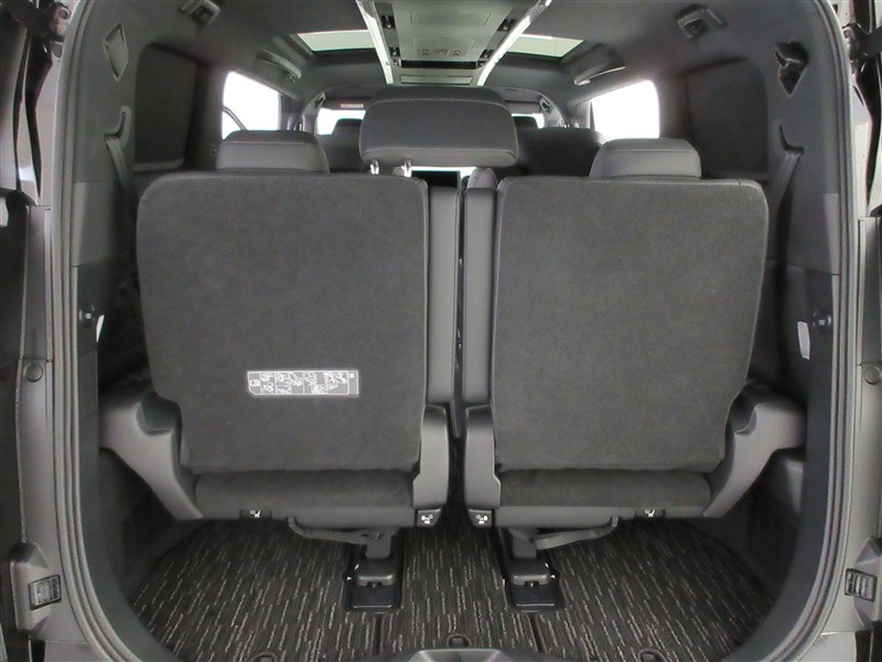 3列目シートは跳ね上げ式で折りたたみ可能です。キャンプ用品など大きな荷物もばっちり収納可能です。