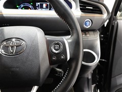 革巻きステアリングでグリップがいいです。左右のスイッチでオーディオボリュームなどが操作出来ます。