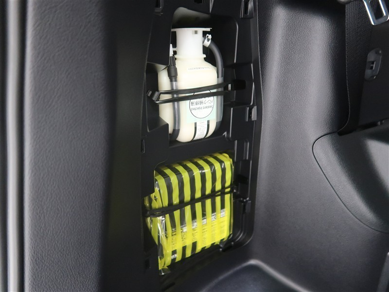 ラゲッジスペース左端にパンク修理キットを搭載しております。