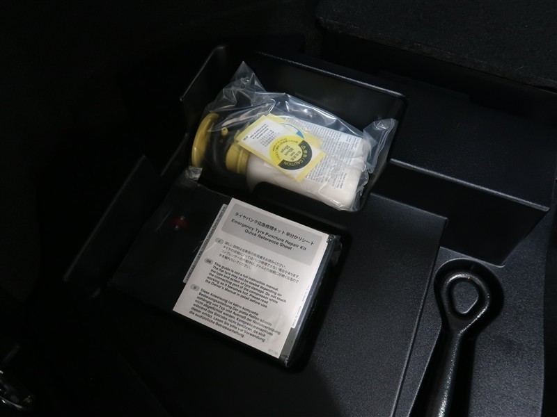 ラゲッジスペース床下にパンク修理キットを搭載しております。