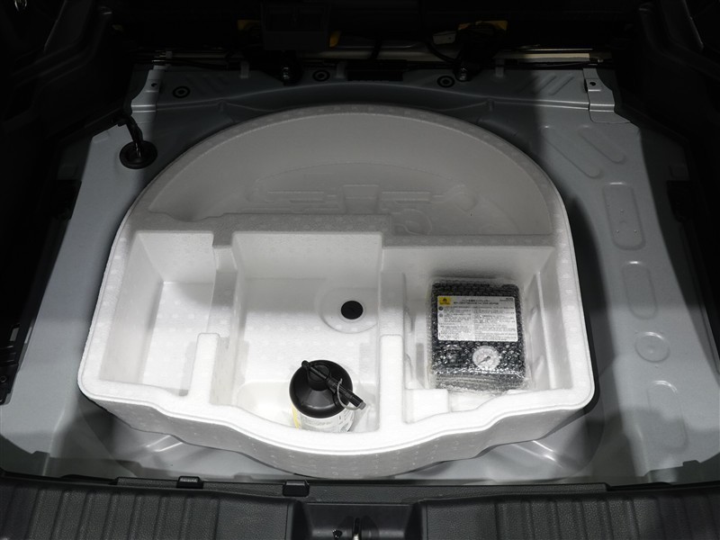 ラゲージルーム床下へパンク修理キットが収納されています。
