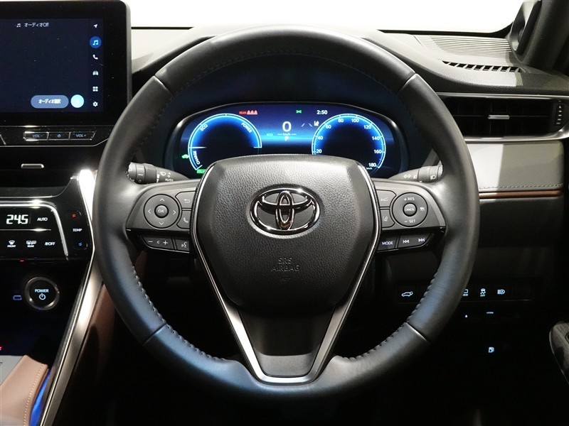 ステアリングスイッチ付き(革巻きハンドル)。前方から目を離すことなく操作することが可能です。