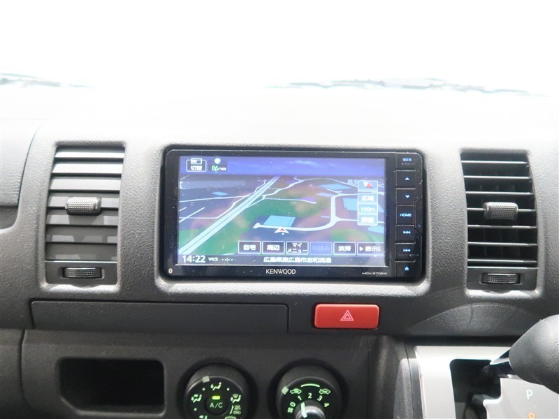 KENWOODナビゲーション(MDV-S706W)を装備しており、CD、DVD、Bluetooth、フルセグ視聴可能です。