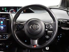 革巻きステアリングでグリップ良好です。