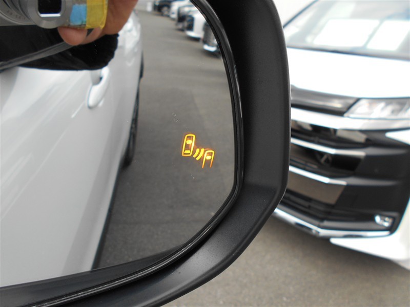車線変更時などに、ドアミラーでは確認しにくい後側方エリア(ブラインドスポット)に存在する車両をレーダーで検知。警告サインをドアミラー等に表示することで、運転者に注意喚起する機能。