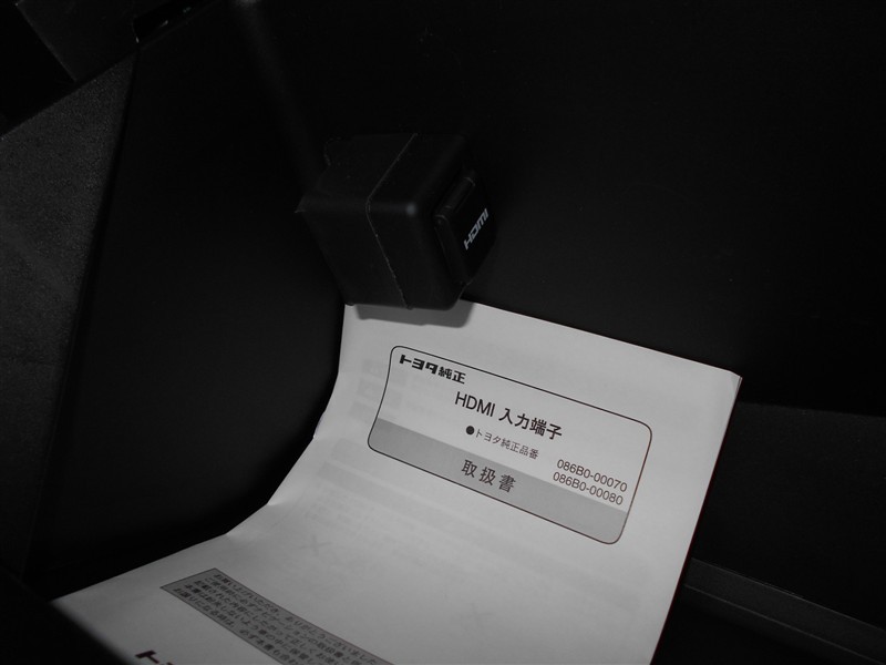 用品のHDMI端子は助手席前コンソール内に設置しております。