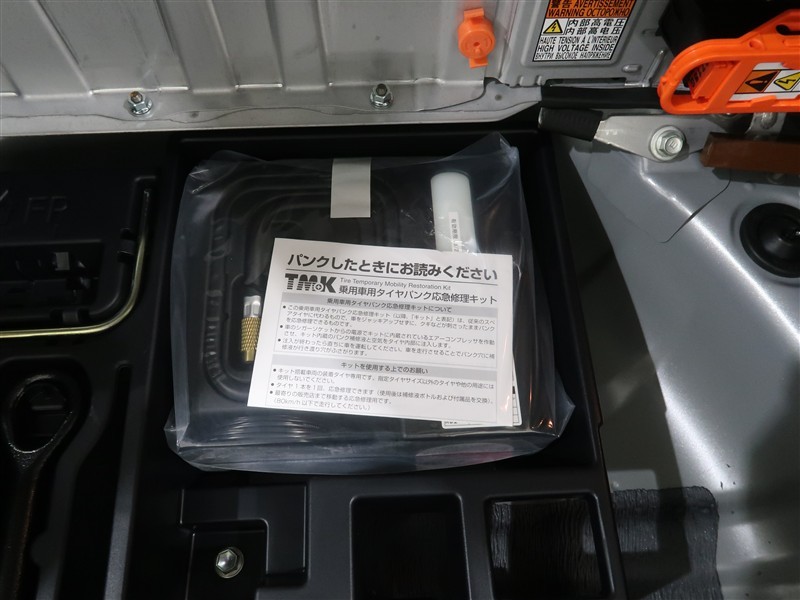 ラゲッジスペース床下にパンク修理キットを搭載しております。