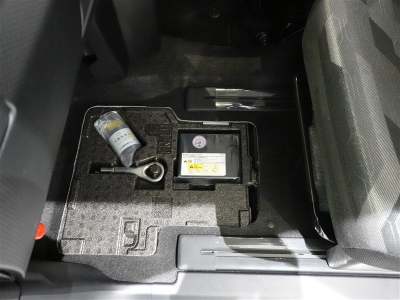 助手席床下にパンク修理キットが収納されています。