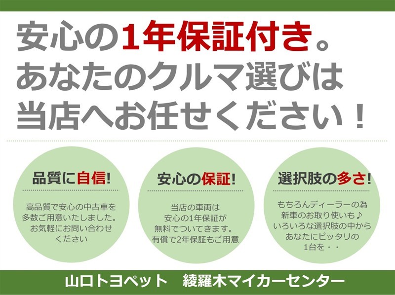 ※ 記載内容とは別に、距離・年式に応じて新車保証が付いている場合があります。詳細は販売店におたずねください。