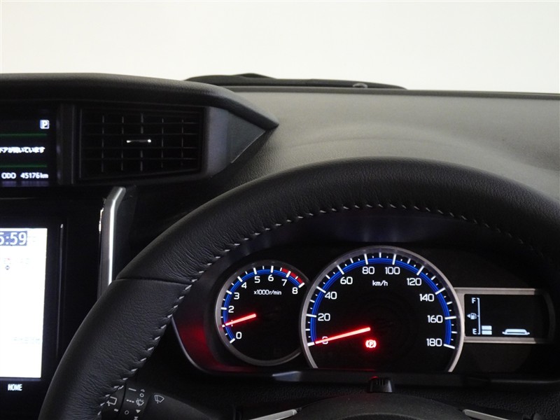 革巻きステアリングで快適な操作性の運転席です。