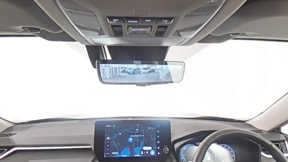 走行中でもバックカメラの映像をルームミラーに投映します。見ずらい後方もこれで安心。