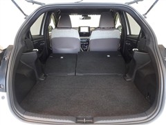セカンドシートを倒した状態です。セカンドシートは独立可倒、荷物に合わせてラゲッジスペースをアレンジできます。