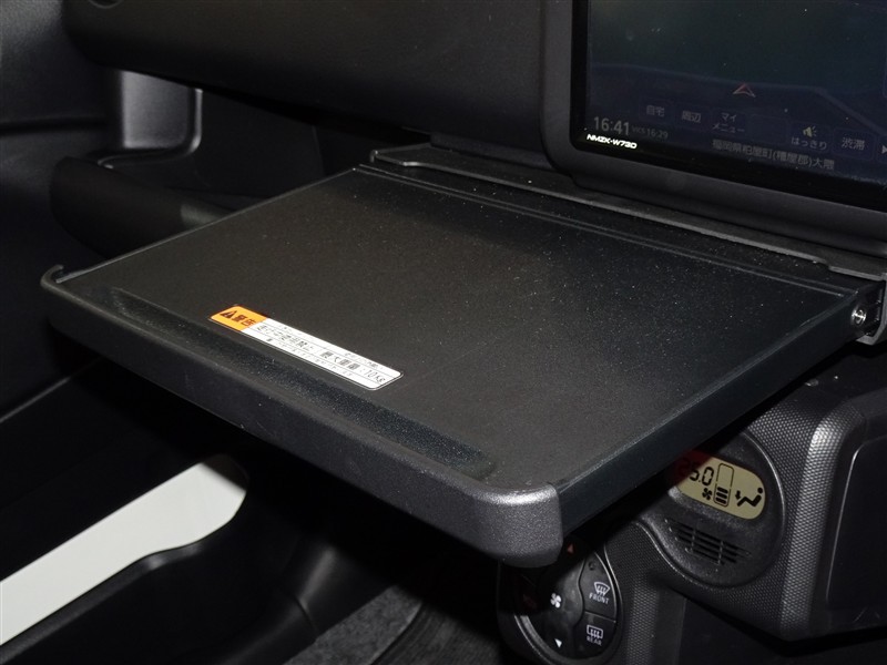 ナビ下のトレーを引き出せばテーブルに早変わり、休憩時に重宝します。
