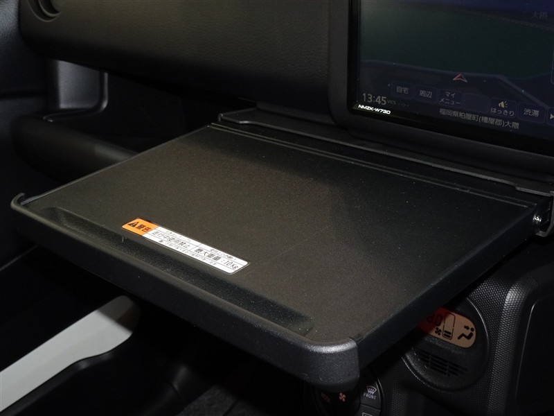 ナビ下のトレーを引き出せばテーブルに早変わり、休憩時に重宝します。