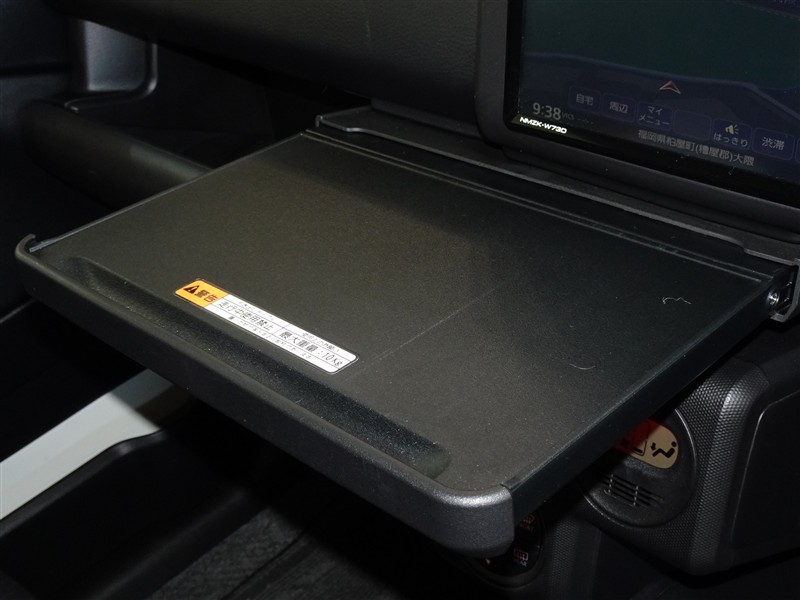 ナビ下のトレーを引き出せばテーブルに早変わり、休憩時に重宝します。