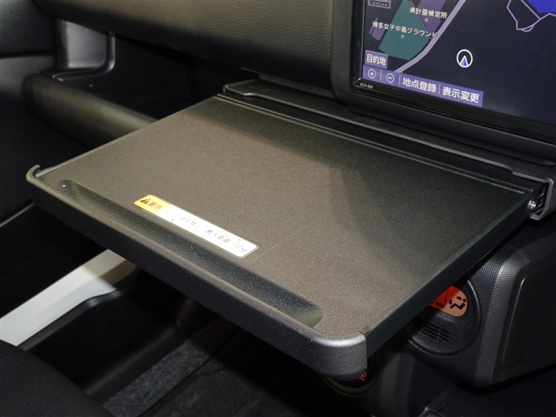 ナビ下のトレーを引き出せばテーブルに早変わり、休憩時に重宝します。