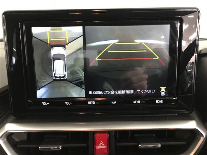 パノラミックビューモニター付きです。車両を上から見たような映像をディスプレイオーディオ画面に表示。運転席からの目視だけでは見にくい、車両周辺の状況をリアルタイムでしっかり確認できます。