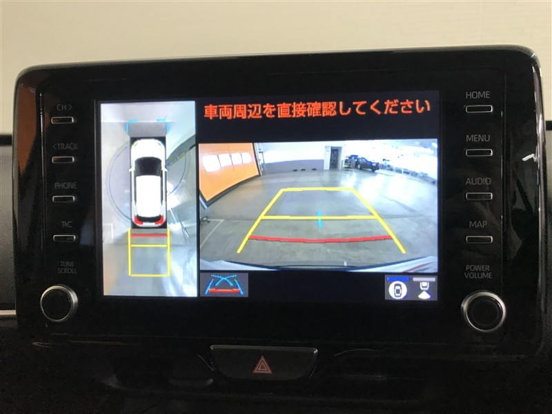 パノラミックビューモニター付きです。車両を上から見たような映像をディスプレイオーディオ画面に表示。運転席からの目視だけでは見にくい、車両周辺の状況をリアルタイムでしっかり確認できます。