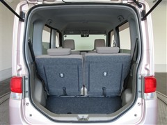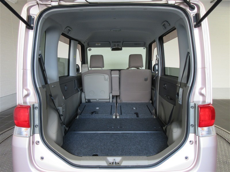 リアシートを倒した状態。簡単動作であっという間にフラットスペースが広がりますので大きな荷物も楽に積めます。状況に合わせたシートアレンジで、様々なシーンに対応出来ます。