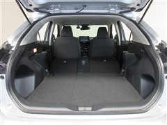 リアシートを倒した状態。簡単動作であっという間にフラットスペースが広がりますので大きな荷物も楽に積めます。状況に合わせたシートアレンジで、様々なシーンに対応出来ます。