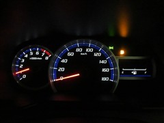 イグニッションONで鮮やかに発光するメーター。
