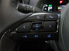 ハンドルに装備されたステアリングスイッチ。主にナビやオーディオと連携して操作出来ます。