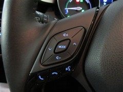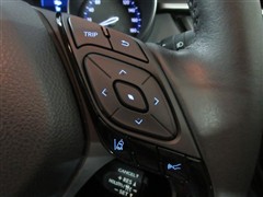 ハンドルに装備されたステアリングスイッチ。主にナビやオーディオと連携して操作出来ます。