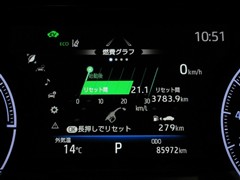 ディスプレイには、平均燃費、外気温、航続可能距離などの情報が表示されます。