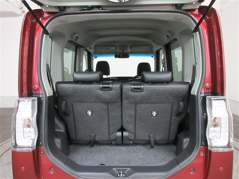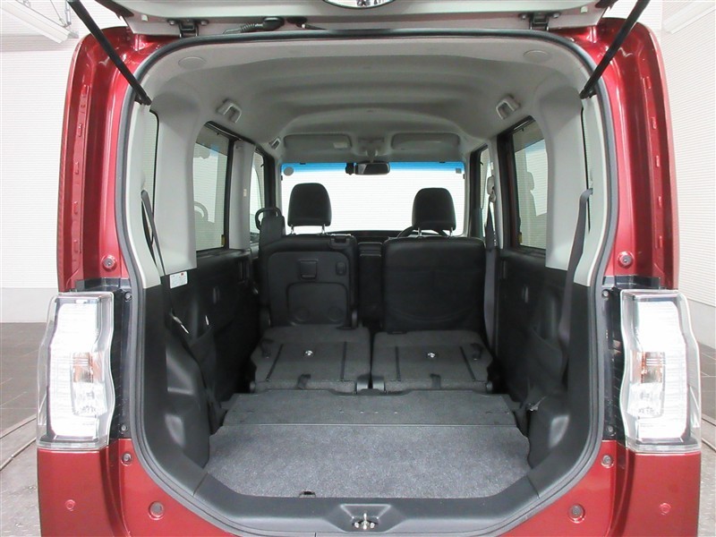 リアシートを倒した状態。簡単動作であっという間にフラットスペースが広がりますので大きな荷物も楽に積めます。状況に合わせたシートアレンジで、様々なシーンに対応出来ます。
