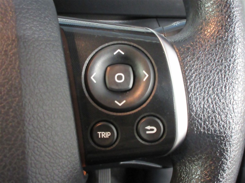 ハンドルに装備されたステアリングスイッチ。主にナビやオーディオと連携して操作出来ます。