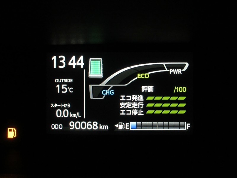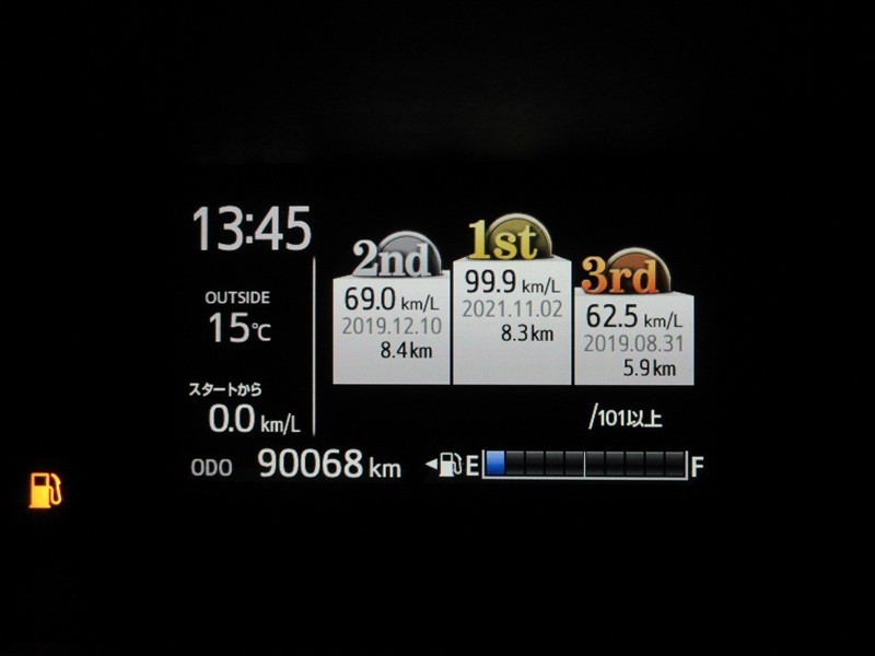 ディスプレイには、平均燃費、外気温、航続可能距離などの情報が表示されます。