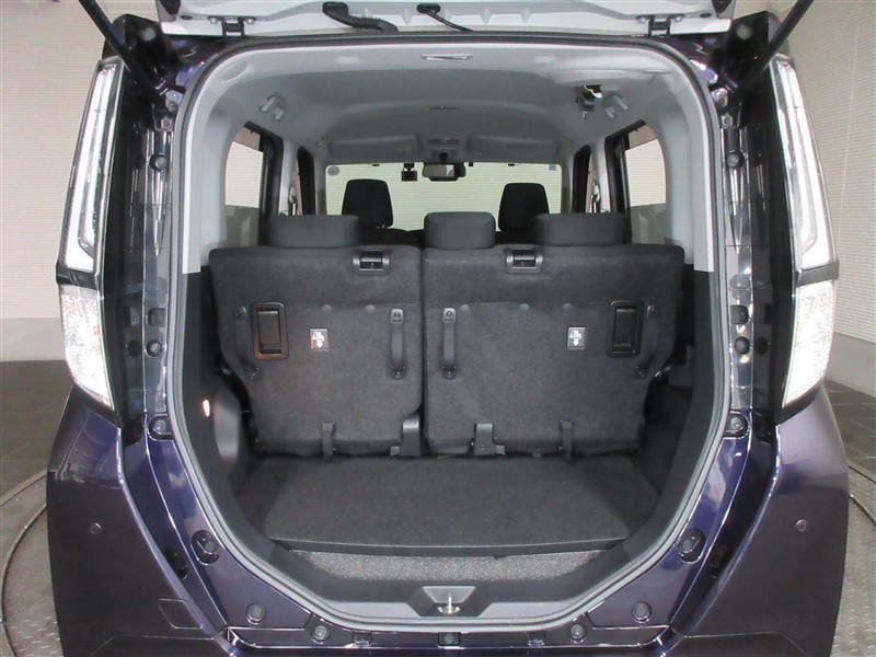 リアシートを倒した状態。簡単動作であっという間にフラットスペースが広がりますので大きな荷物も楽に積めます。状況に合わせたシートアレンジで、様々なシーンに対応出来ます。