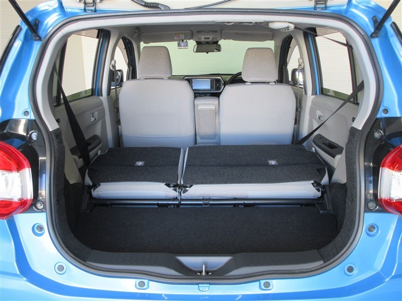 リアシートを倒した状態。簡単動作であっという間にフラットスペースが広がりますので大きな荷物も楽に積めます。状況に合わせたシートアレンジで、様々なシーンに対応出来ます。