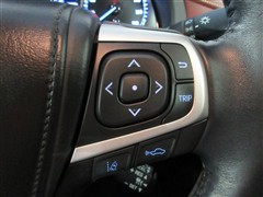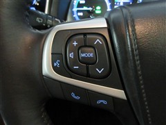 ハンドルに装備されたステアリングスイッチ。主にナビやオーディオと連携して操作出来ます。
