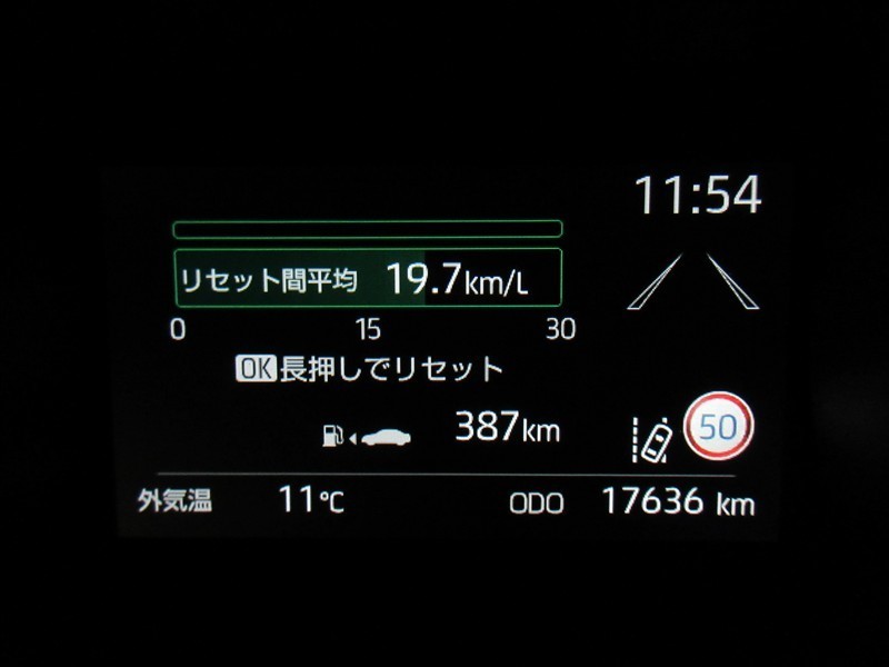 ディスプレイには、平均燃費、外気温、航続可能距離などの情報が表示されます。