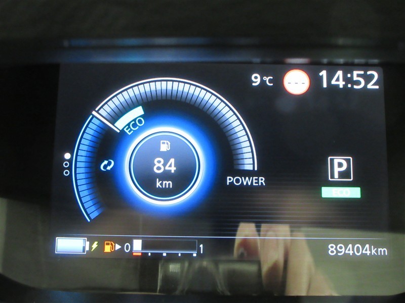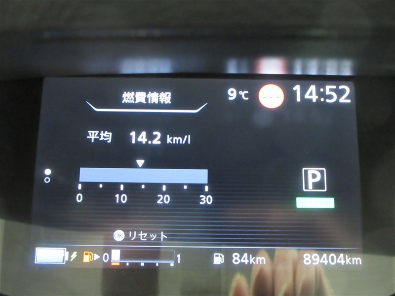 ディスプレイには、平均燃費、外気温、航続可能距離などの情報が表示されます。