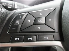 ハンドルに装備されたステアリングスイッチ。主にナビやオーディオと連携して操作出来ます。