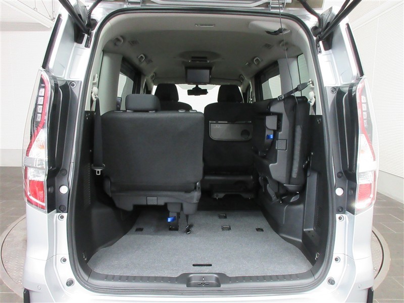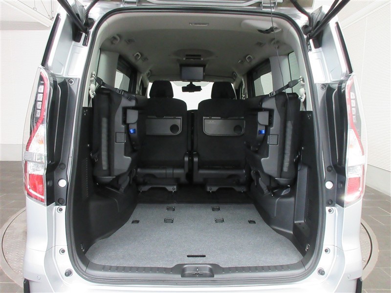 リアシートを跳ね上げた状態。簡単動作であっという間にフラットスペースが広がりますので大きな荷物も楽に積めます。状況に合わせたシートアレンジで、様々なシーンに対応出来ます。
