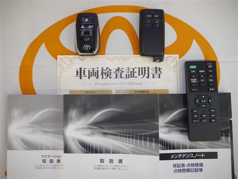 スマートキー&エンジンスターター&後席モニター用リモコン付。取扱説明書とメンテナンスノートも付いてます。品質評価シート付いてます!!