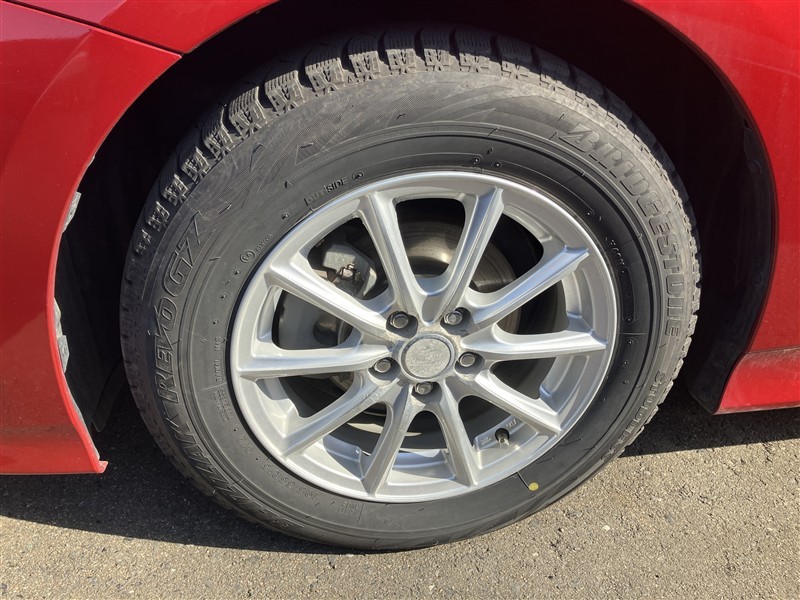 社外アルミ。タイヤサイズは195/65R15、現在は冬タイヤ装着で残り溝は約4ミリです