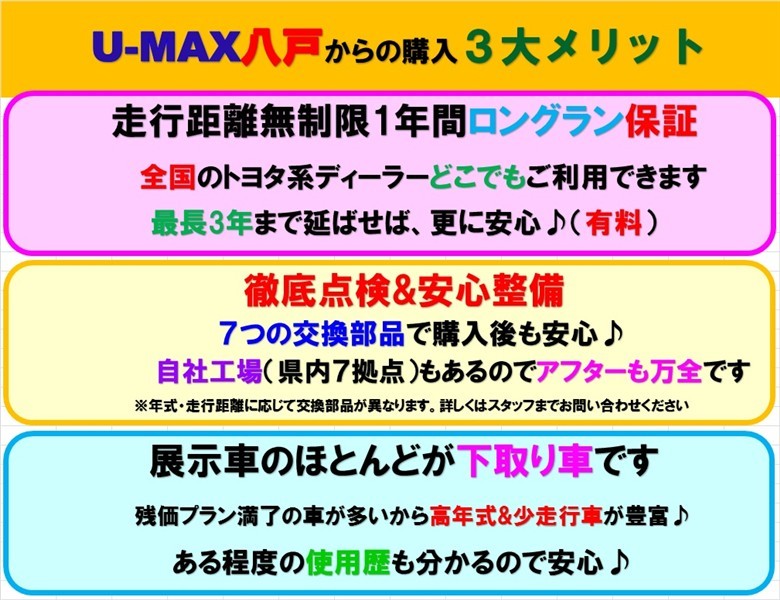 この度はU-MAX八戸の掲載車をご覧いただきありがとうございます。車に関するご質問等は気軽にご相談ください。【TEL0178-45-9555】