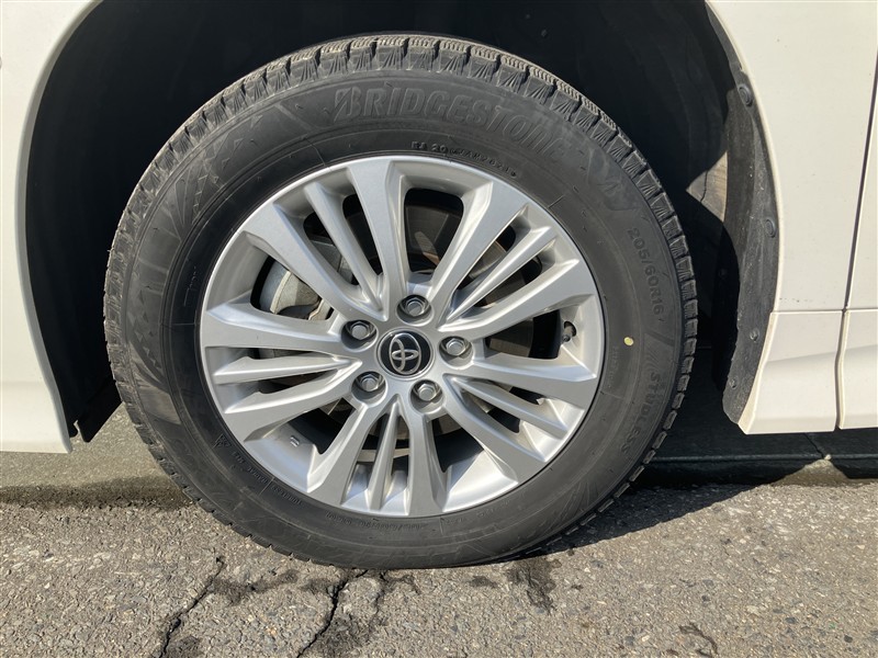 純正アルミ。タイヤサイズは205/60R16、現在は冬タイヤ装着で残り溝は約5ミリです
